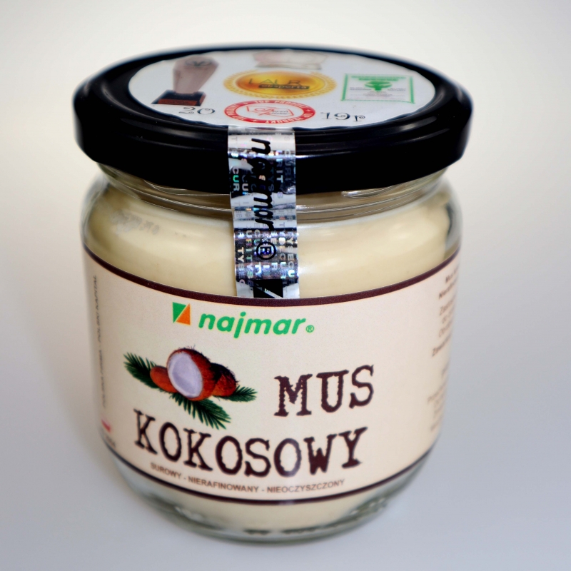 Mus/masło/krem kokosowyjest produktem wytwarzanym poprzez miażdżenie surowca do chwili uzyskania odpowiedniej konsystencji. Wartości musu kokosowego są nieocenione. Kto nie próbował naturalnego mleczka kokosowego, to nie wie co znaczy surowa, naturalna jakość.
